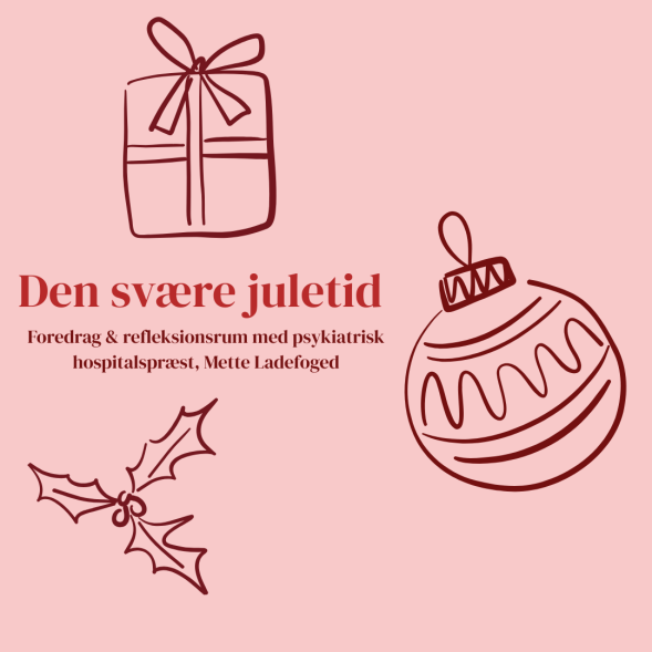 Bedre Psykiatri København afholder i anledning af december en aften med temaet ‘Den svære juletid’. Med et foredrag og refleksionsrum faciliteret af psykiatrisk hospitalspræst Mette Ladefoged, inviterer vi til en aften, der giver rum til de svære følelser, der kan opstå omkring højtider og mærkedag i familier, der er ramt af psykisk lidelse.